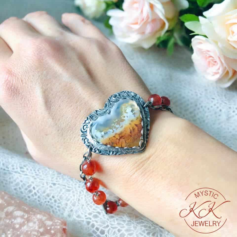 My creative process with creating jewelry is much like my process when I paint. I often begin a piece without a specific idea in mind and just let it evolve as I go with the flow. It’s a beautiful and intuitive process as the stones and crystals I am working with lead the way.