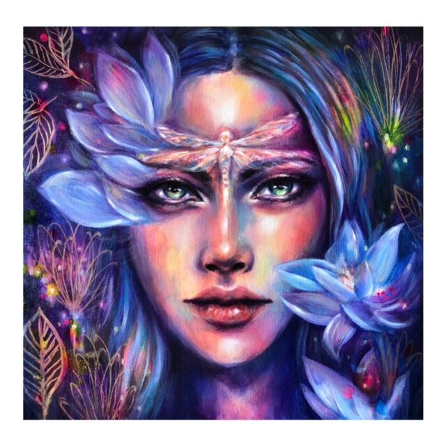 Fine Art Print of my original oil and mixed media painting “The Dance of the Dragonfly”.