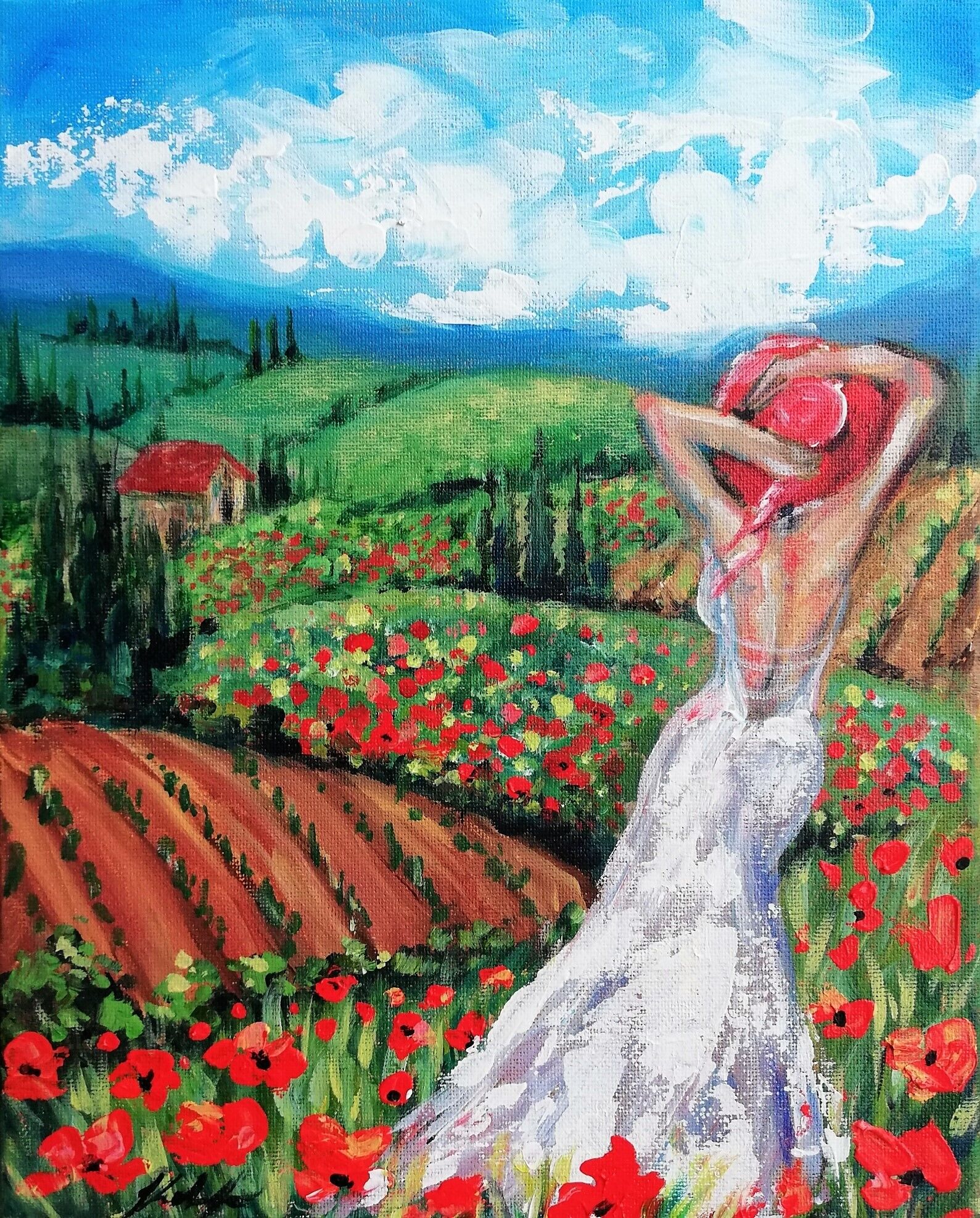 In our bonus lesson We will be taking a virtual stroll through the poppy fields of Tuscany as we paint a landscape in acrylics creating some yummy texture and vivid colors.