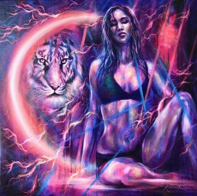Often I begin a piece without a specific idea in mind and just let it evolve as I go with the flow. Many times I paint from my dreams and soul memories that emerge as I create, letting my heart and soul lead the way.